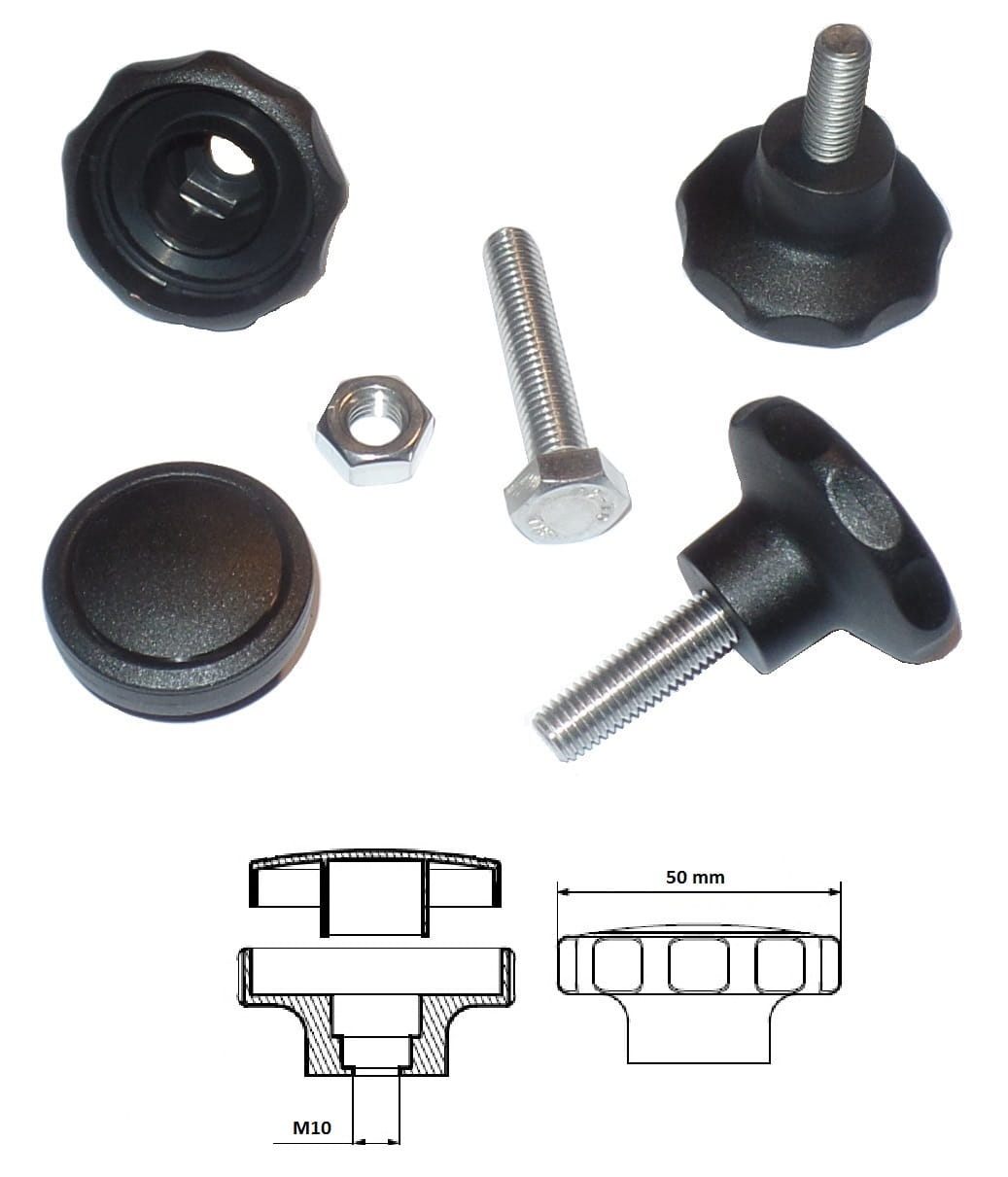 Pokrętła składane M10 wykonane z polietylenu.